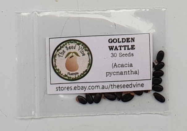 The seed of Acacia pycnantha is edible. Green seed can be cooked like any other vegetable and the ripe seed can be roasted and eaten or ground into a powder to make flour.