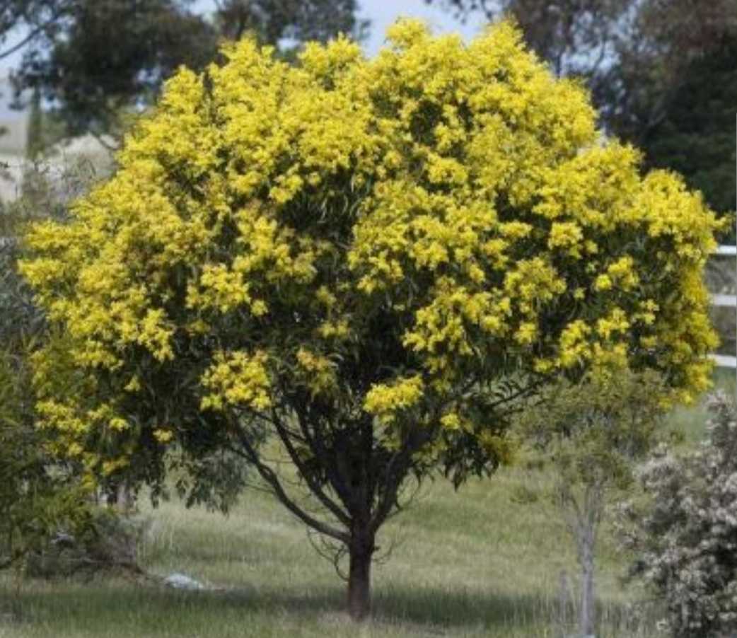 Golden wattle is a relatively small tree growing only to around 8 metres high and 6 metres wide. The leaves grow to around 14 cm in length and its flowers look like little pom poms and are bright yellow. This species is cold tolerant to temperatures of -7°C and once established is hardy being drought, wind and heat tolerant. Acacia pycnantha has a short life span of 15-30 years.