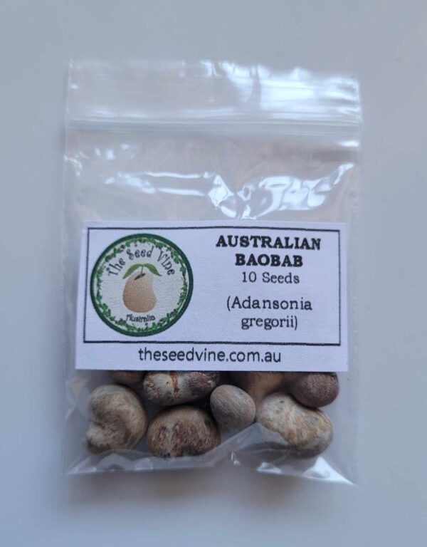 Adansonia gregorii ( Australian Baobab ) is a fast-growing deciduous tree that is native to the Kimberley region of Western Australia. This bottle-shaped ornamental tree produces edible fruits, bark that can be used to make medicine and is becoming popular as a bonsai project in the cooler climates. Mature trees produce white flowers from late summer and throughout autumn.