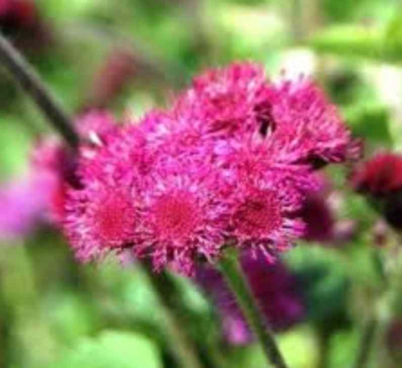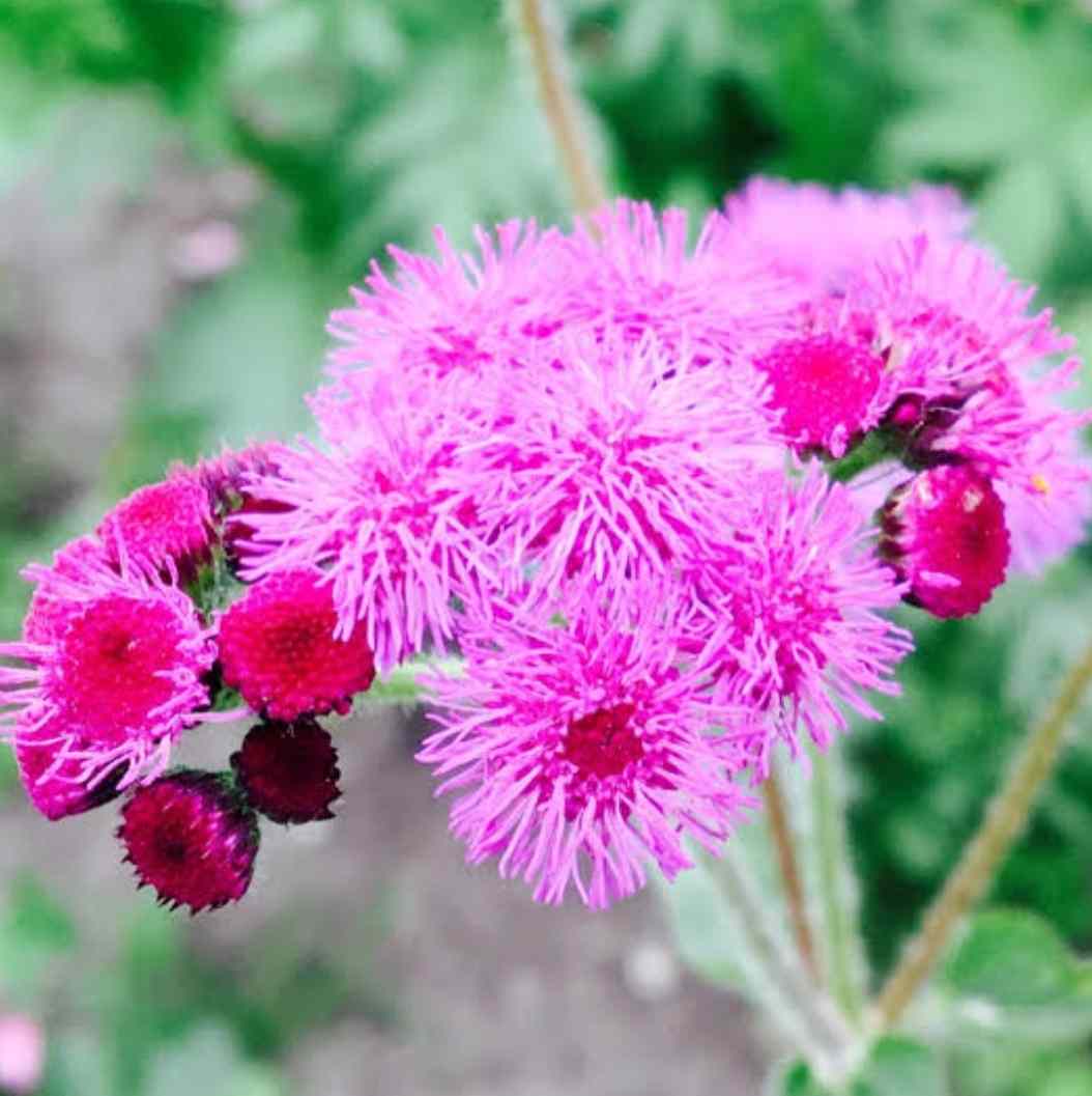 The Floss Flower ( Ageratum houstonianum ) is an annual flowering plant who’s summer blooming flowers are attractive to many gardeners. The flowers are button shaped and have soft frills that stand on end around them. Easy to grow and extensively used as a border or potted plant, it can also be a good cut flower. Attracts butterflies to the garden but is toxic to livestock.