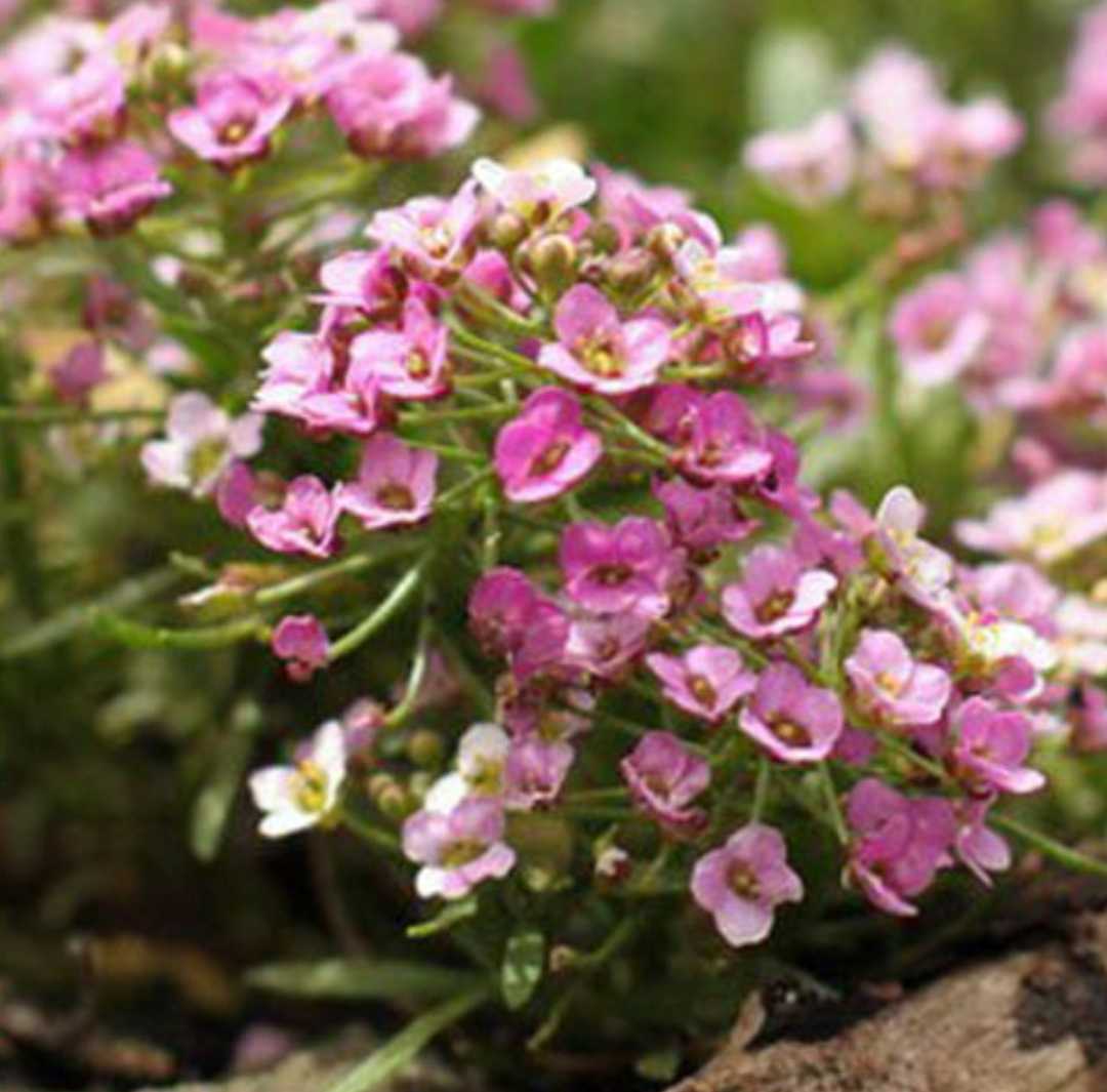 Alyssum Rosie O’Day ( Lobularia maritima ) in annual low growing plant that is native to the Canary Islands, Cape Verde, Madeira and The Bay of Biscay in France. Alyssum is commonly grown as a groundcover, in rockeries or as a cascading plant over garden walls but is also suitable for pot/container growing, through gaps in paving, as a border and in hanging baskets. The tiny, sweet smelling flowers of Alyssum Rosie O’Day are pink in colour and cover this little plant in a sea of flowers for months from late Spring until the first frost arrive.