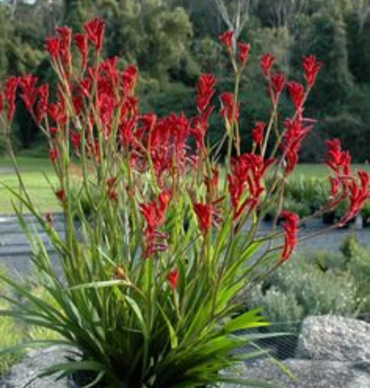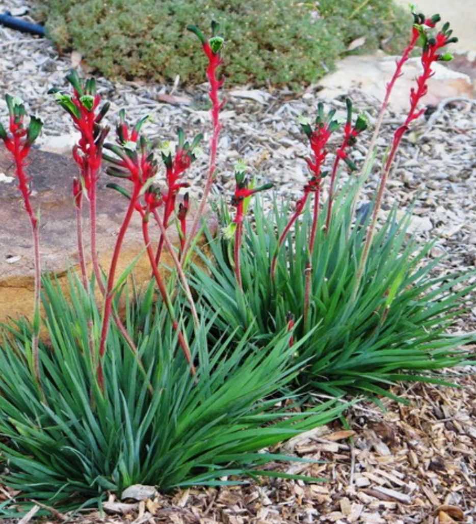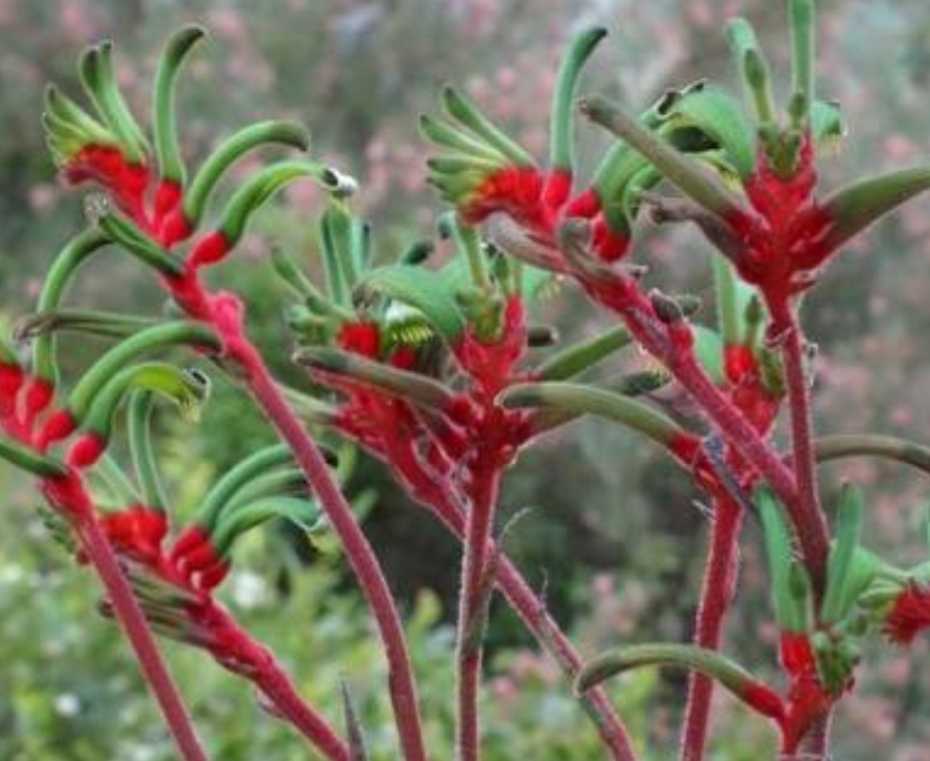 Anigozanthos manglesii or the Red and Green Kangaroo Paw is an evergreen, perennial native to southern regions of Western Australia. Plants can produce up to 300 red flowers on ten stems and like the name suggests, they resemble a kangaroo’s paw. They are low-maintenance and an excellent species for attracting birds to the garden.