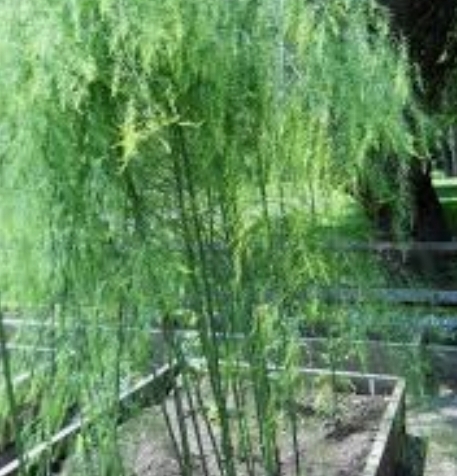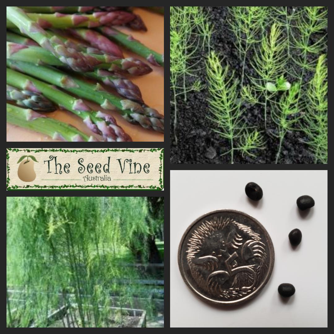 Asparagus officinalis is a common vegetable that grows to a height of 1.5 m (5 feet). It performs well in a range of soils and climates. Seeds or crowns can be used to propagate new plants but are best started when soil temperatures consistently surpass 15°C / 60°F. Asparagus officinalis can be started in pots, but final position should be in a raised garden bed or directly in the ground.