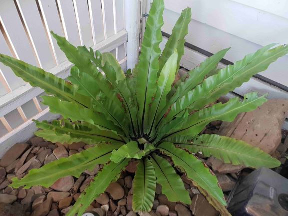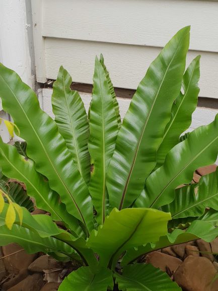 The Birds Nest Fern ( Asplenium nidus ) is a beautiful addition to any shaded outdoor area, grown on trees or boards or even indoors. It is a tropical evergreen plant native to tropical parts of Africa, Asia, India, Hawaii, and Australia! Unlike many fern varieties this one has large complete leaves, not like most people picture a fern in their mind.