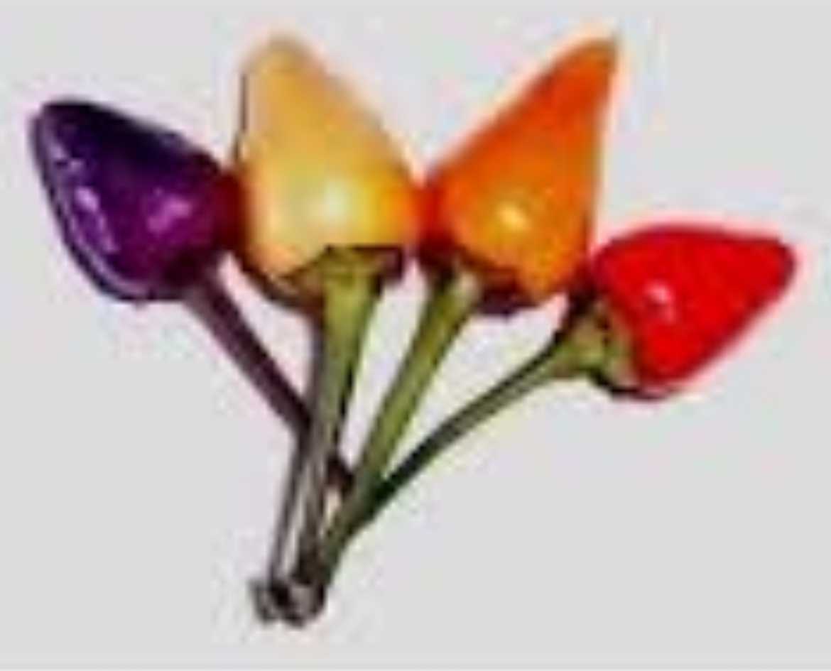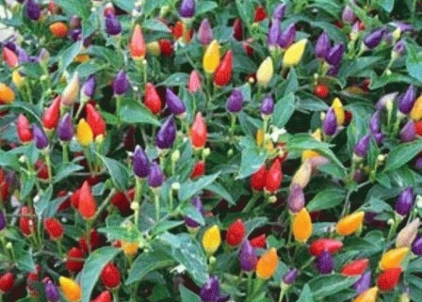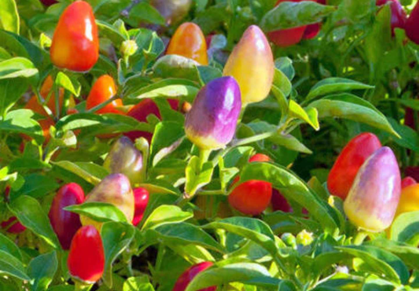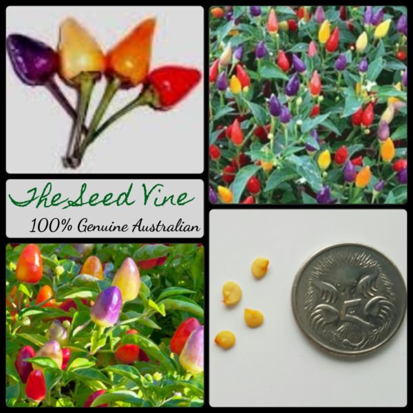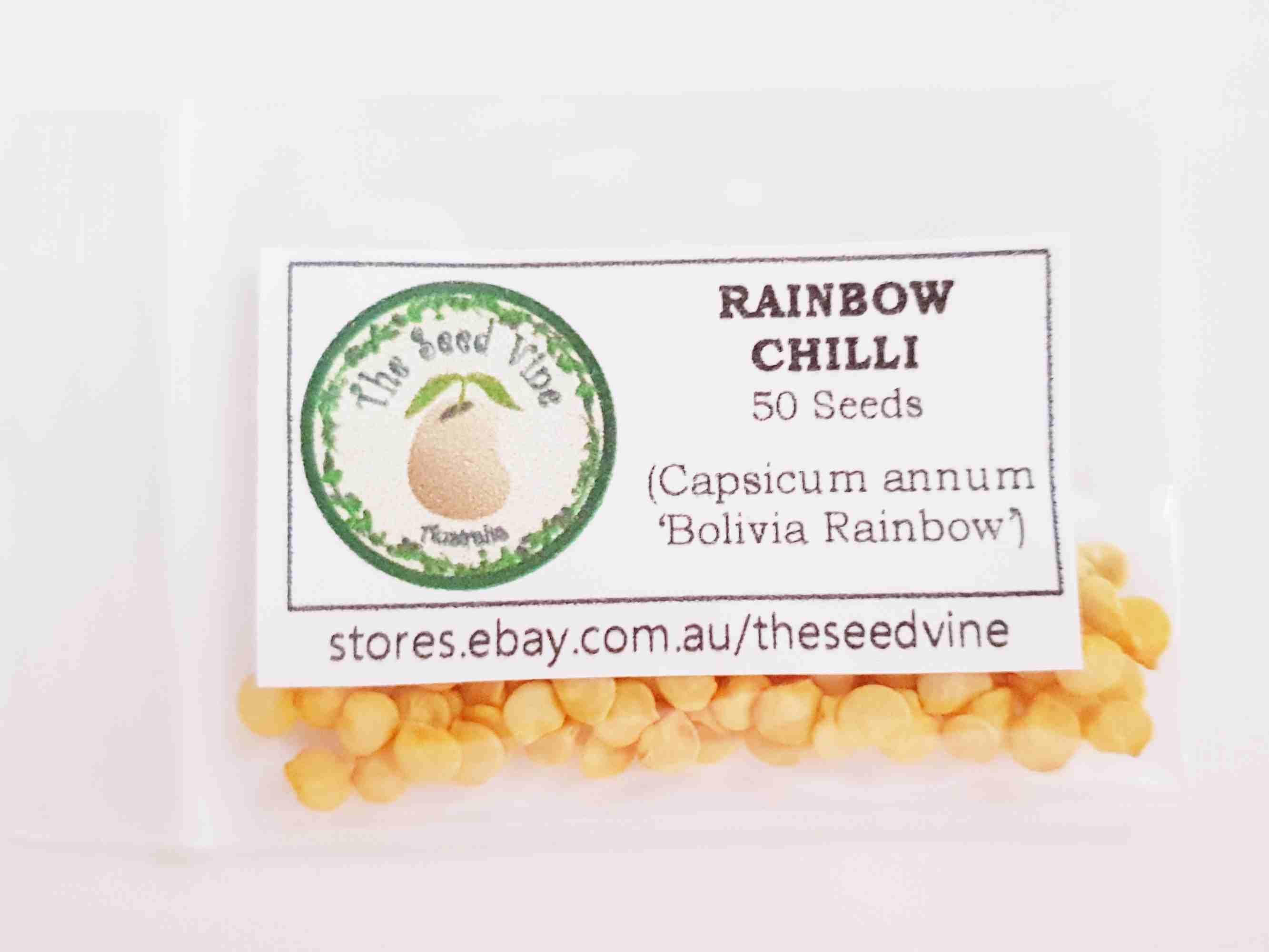 Bolivian Rainbow Chilli ( Capsicum annuum var. Bolivian Rainbow ) have been grown for centuries in their native land of Bolivia, South America. This variety makes for a beautiful ornamental in the garden due to its vibrant colours the mature at different times, giving the rainbow effect with purple, orange, and red all present at the same time. The Bolivian Rainbow Chillies are small, but still have some kick in them.