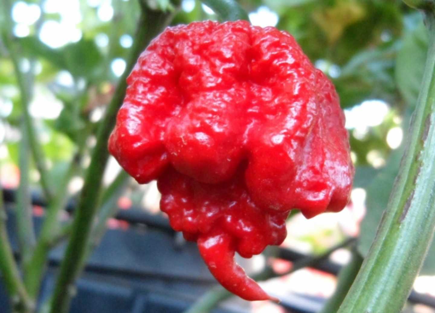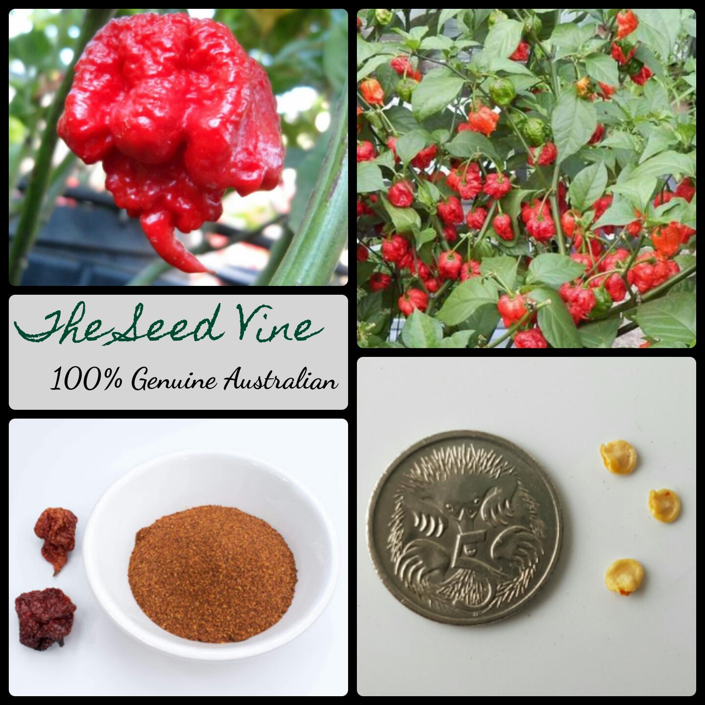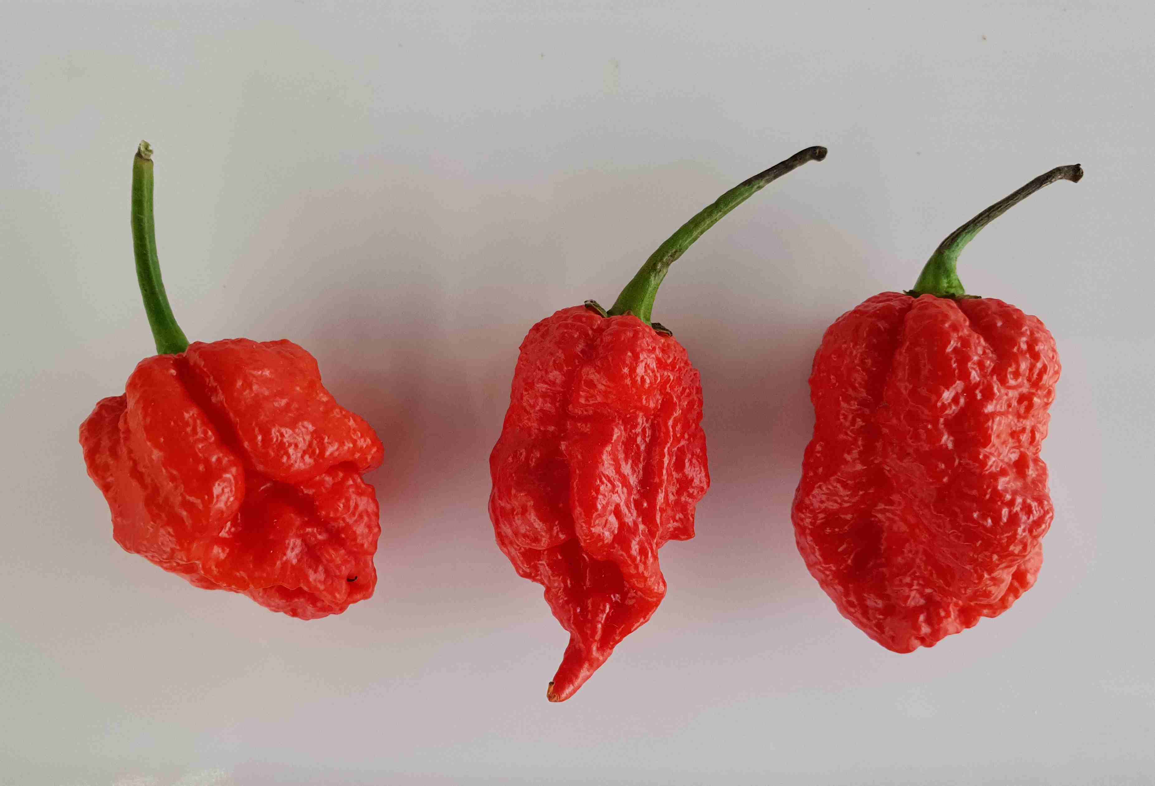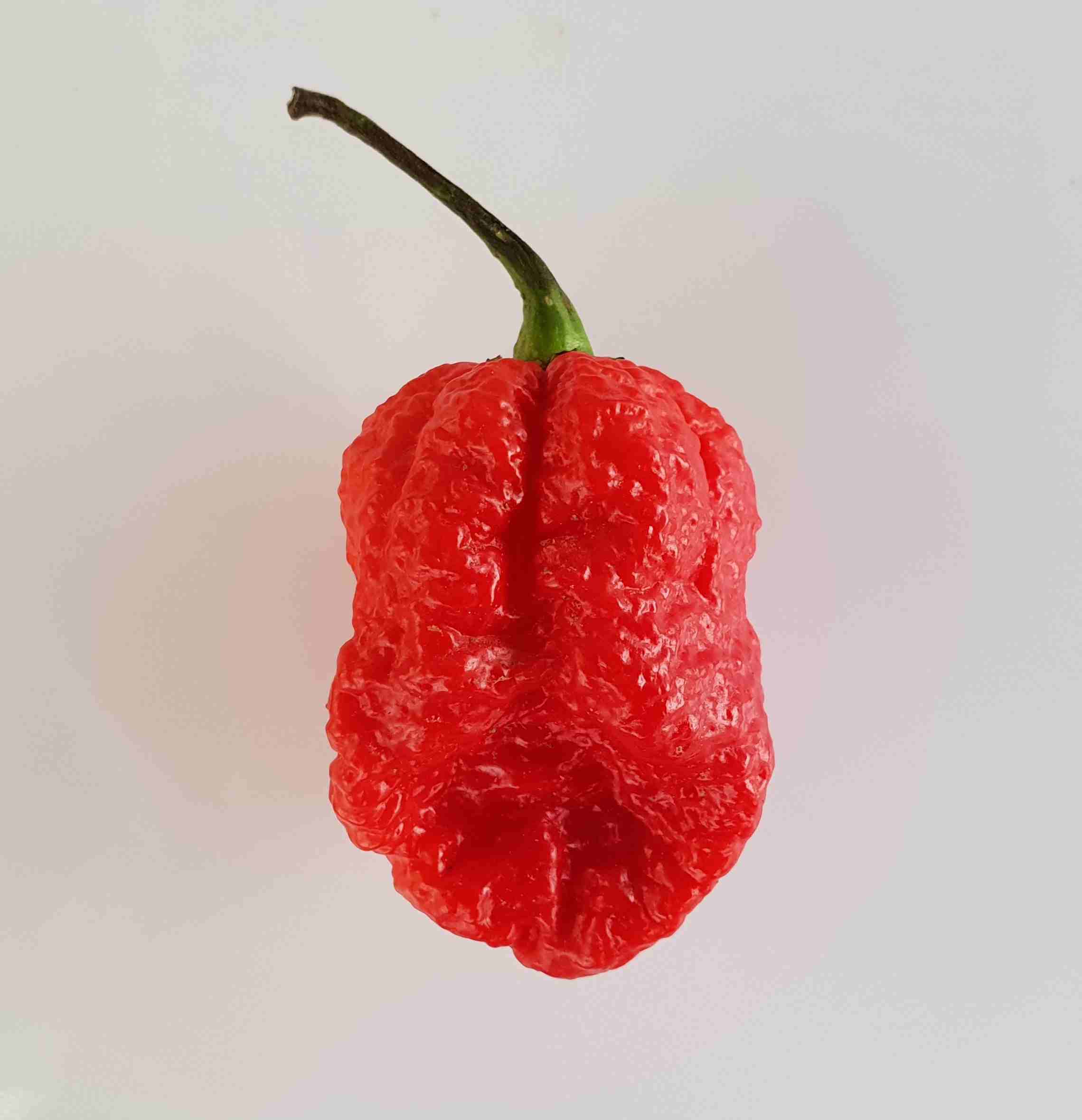 Carolina Reaper Chilli ( Capsicum chinense ) are officially the hottest chilli in the world today (as of 2020). There are two others that may topple its Guinness World record holding status, the Dragon’s Breath the Pepper X but until this time it is #1. The Carolina Reaper Chilli stole the record from the Moruga Scorpion Chilli in 2012. Due to their extreme heat, it is not something that we would recommend eating raw and is more suited to making extremely hot sauces or as a dried spice. Please wear gloves when handling these chillies or its seeds; you will feel the burn in your eyes as you cut them.