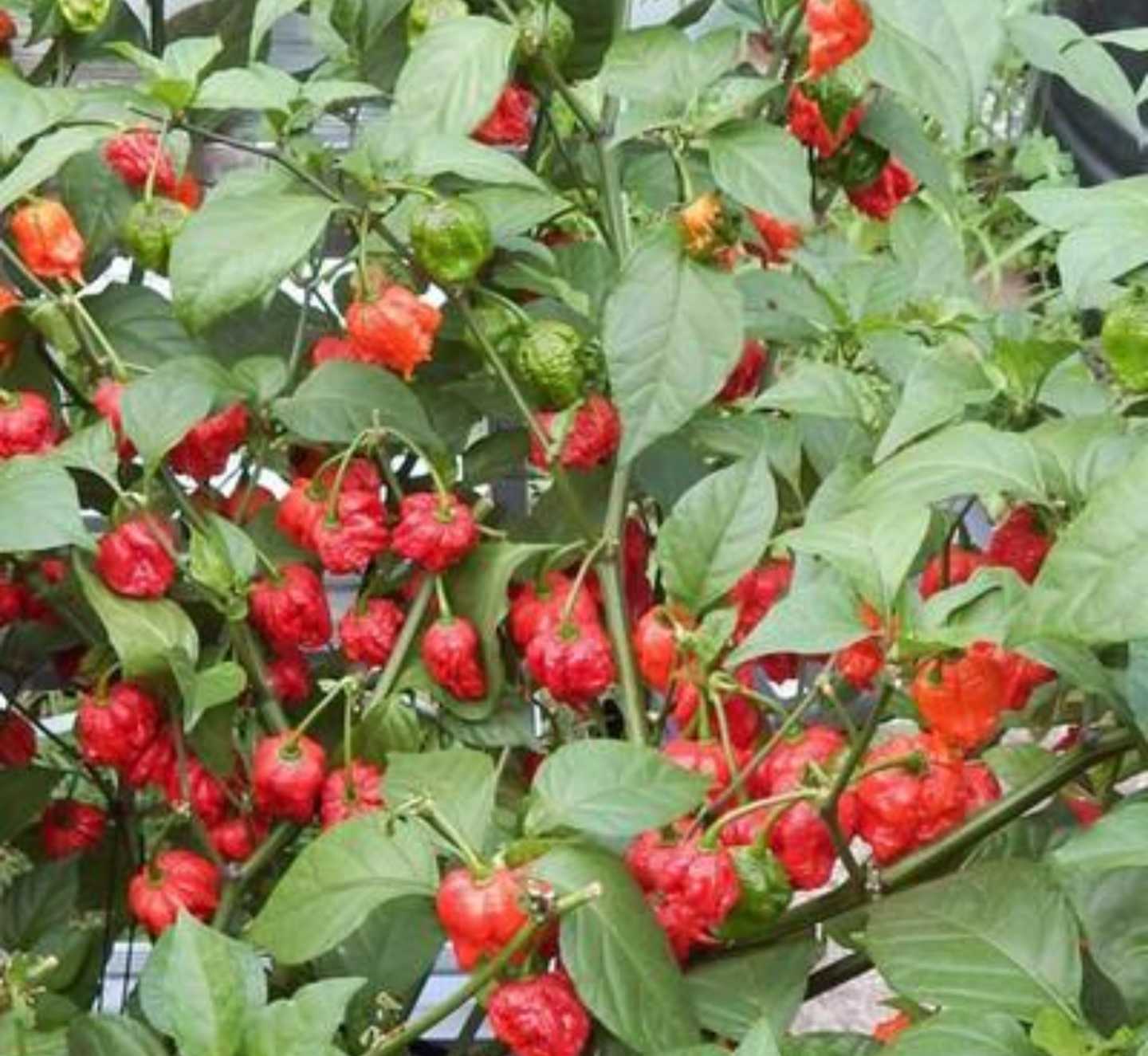 Carolina Reaper Chilli plants are a larger growing chilli, getting to around 1.2-1.5 metres tall. Its chilli’s range between 2.5-7.5 cm’s long and has a tail. The fruit starts off green and eventually changes to a bright red colour. From seed to harvest is around 12-14 weeks. Please keep this plant away from children.