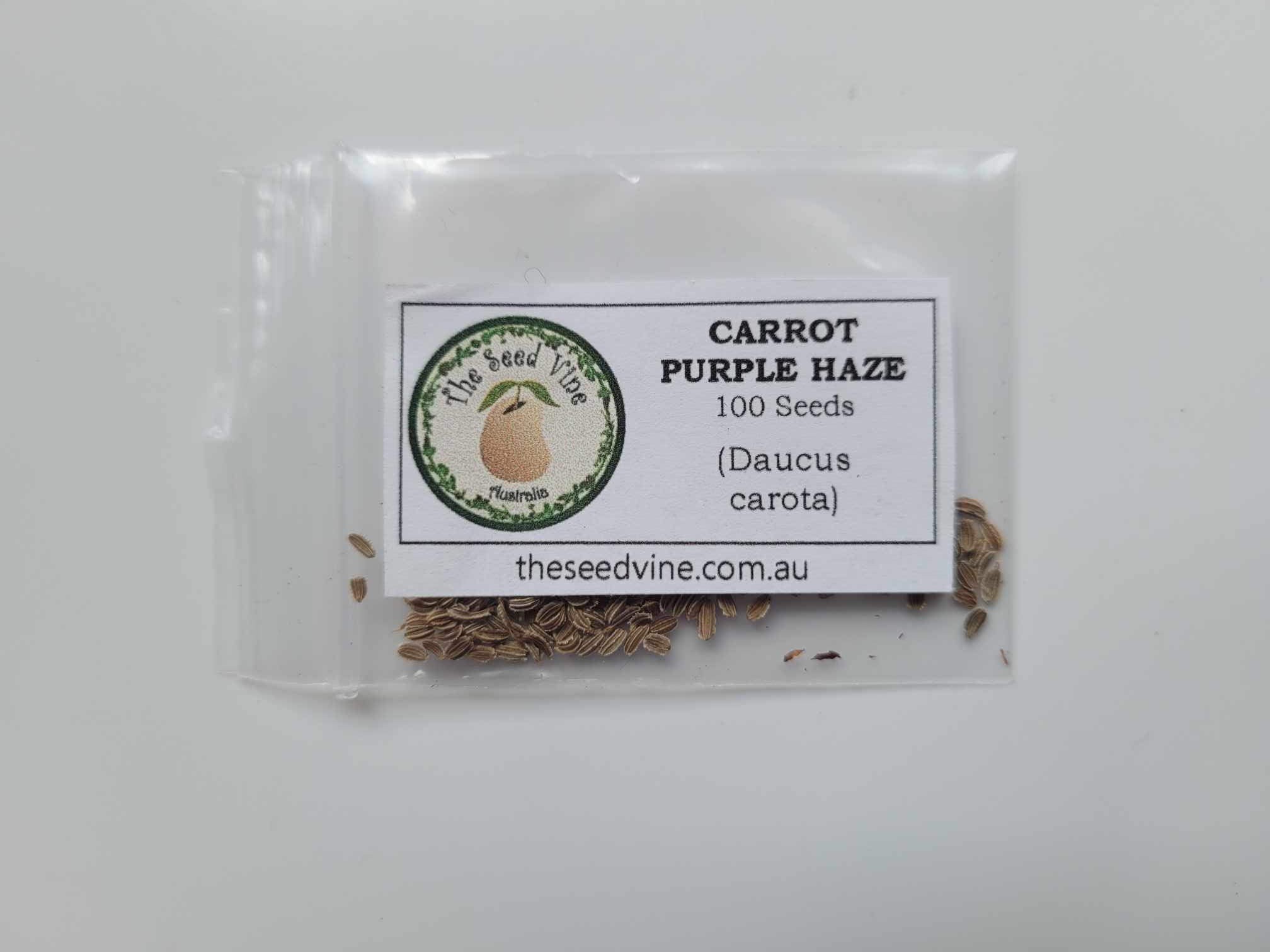 Carrot Purple Haze ( Daucus carota ) is a hybrid carrot with deep purple exterior and bright orange inside. It is certainly a beautiful carrot to grow and its flavour is delicious. When eaten raw the texture is crisp and the flesh is sweet and flavoursome, definitely a family favourite, especially with children.