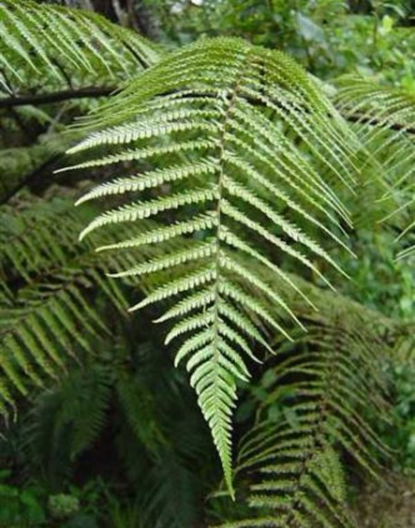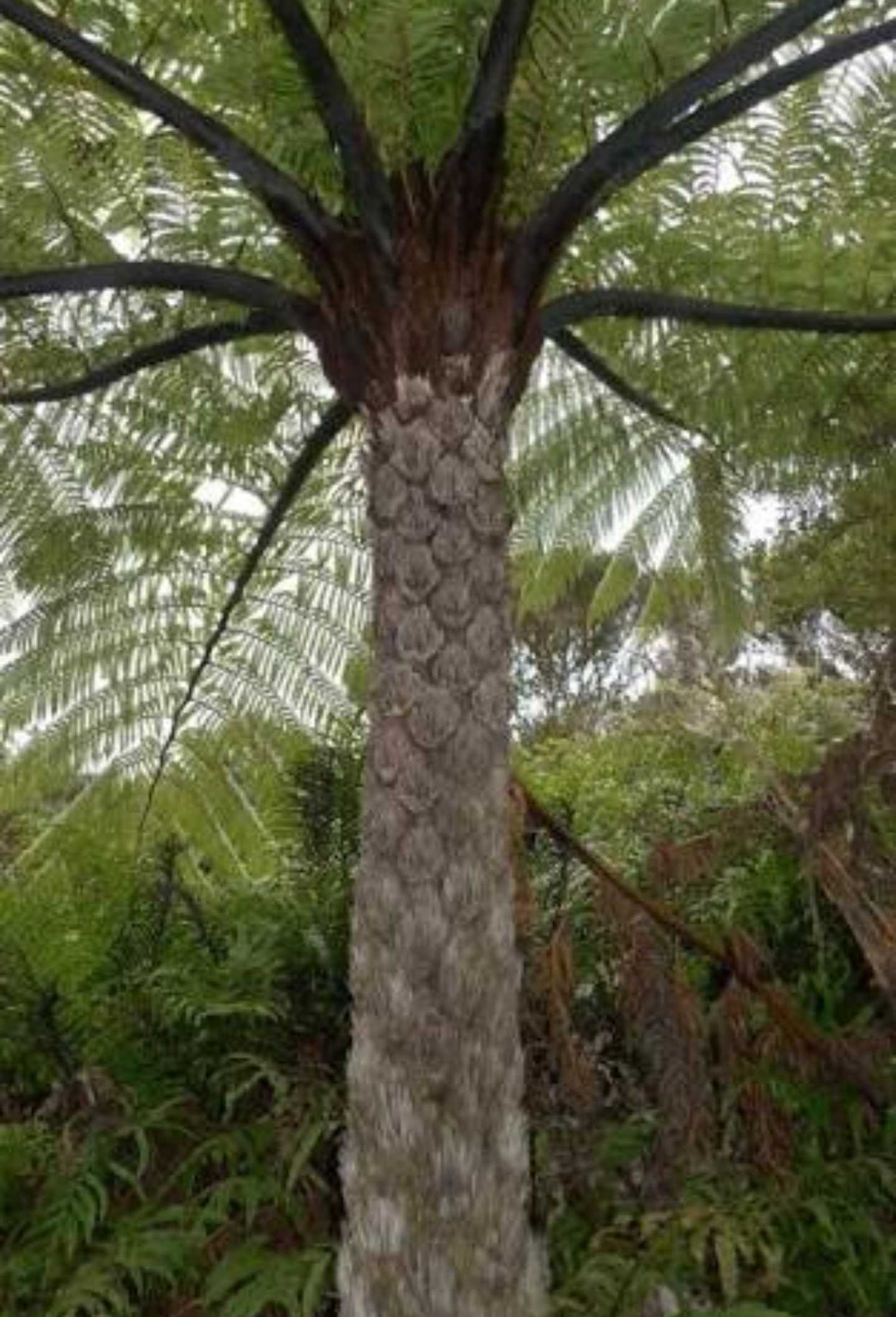 The Black Tree Fern ( Cyathea medullaris ) is a large tree fern that is native to New Zealand. It is recognisable by its thick deep black frond stipes, reddish coloured hairs along its stipes and the circular-hexagon shaped scars on its trunk from old fronds. It is a beautiful species that is quite hardy to cool temperatures, wind and sun, often seen growing in the open in its native range. Due to its large size it is not a common backyard specimen, although very ornamental.