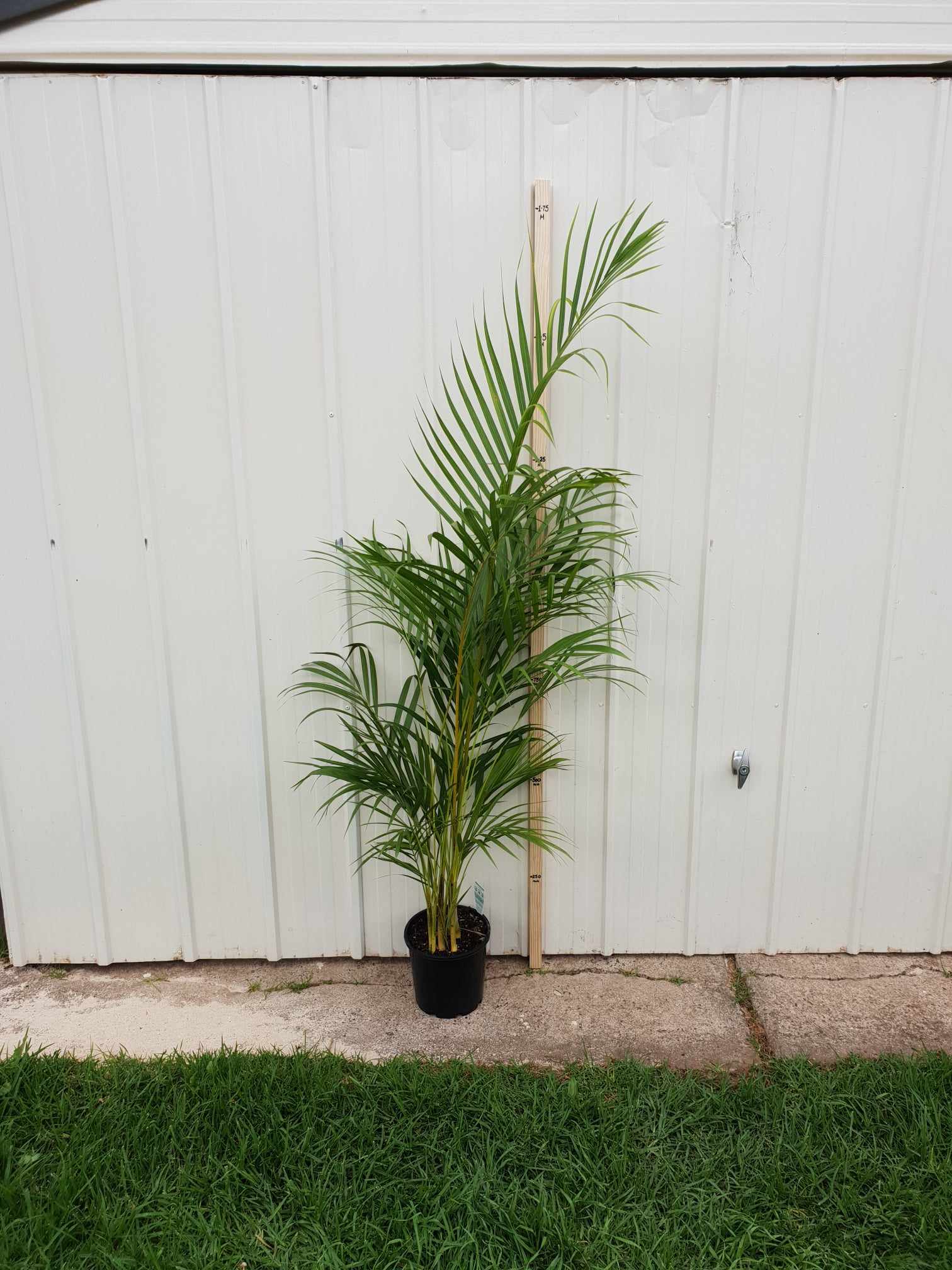 Dypsis lutescens is a tropical evergreen palm tree that reaches a maximum height of 12 metres (39 feet) and a width of 5 metres (15 feet). Areca Palms rarely reach the maximum size outside of their natural habitat in Madagascar and are generally slow growing at around 15-25cm (6-10 inches) per year.