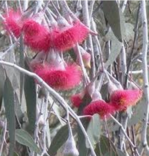 The bark is known as minni ritchi with the red peeling off to reveal lighter colours underneath. Pink to red flower buds arrive in late autumn and then flower throughout the winter and into early spring. This beautiful tree gets its common name from the white powder that covers the branches, flowers and gum nuts making them look silver.
