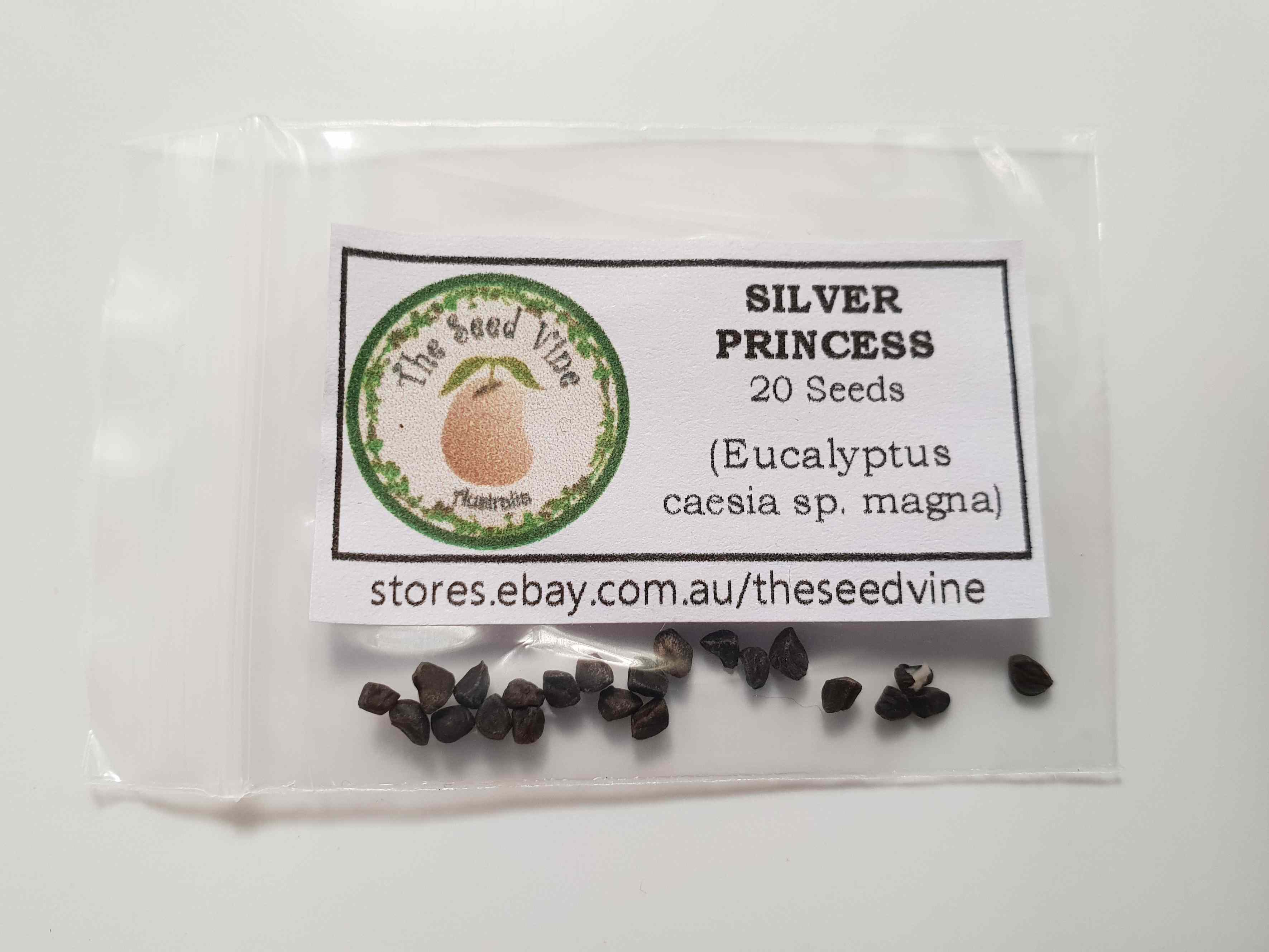 There are two sub-species of the Silver Princess. These seeds come from the Eucalyptus caesia subsp: magna which is renowned for its weeping form. The other species is Eucalyptus caesia subsp: caesia which is shorter, has smaller leaves and flowers and has an upright form.