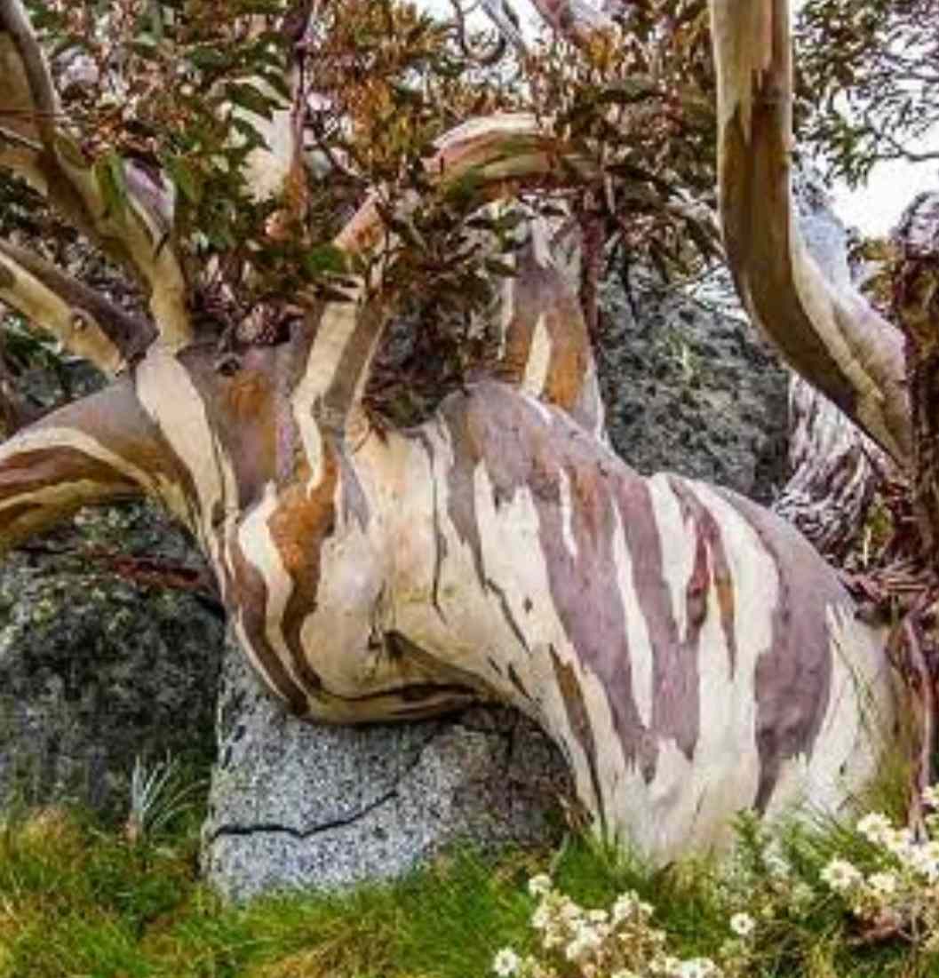Eucalyptus coccifera ( Tasmanian Snow Gum ) is an attractive tree native to sub-alpine regions of Tasmania. Tasmanian Snow Gums is a popular species due to their multi-coloured bark and small white flowers that cover the branches during summer. Though native to Tasmania, this species has been successfully grown in all climates across Australia. The tree is also commercially grown for honey production and timber.
