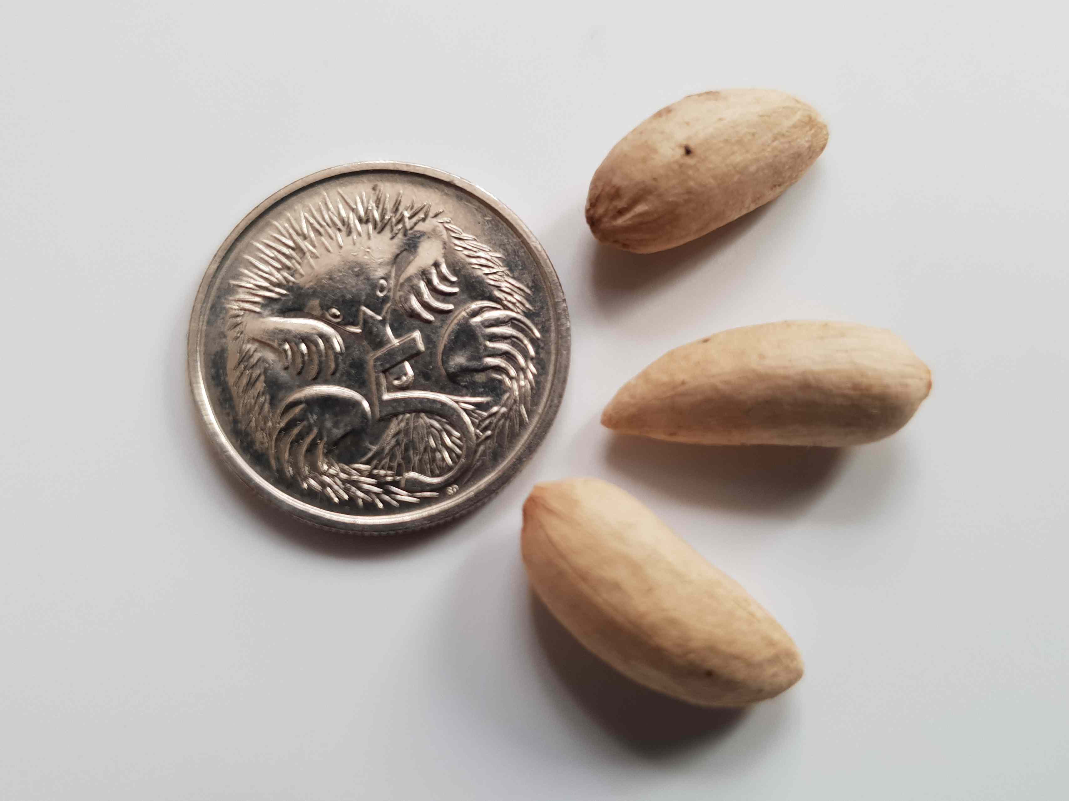 Flowers appear in the dry season before a heavy cluster of fruit on the female trees. Each fruit contains 3-8 seeds and can weigh between 20-85 grams. Mature trees yield on average 12 kgs (26 pounds) of fruit annually.