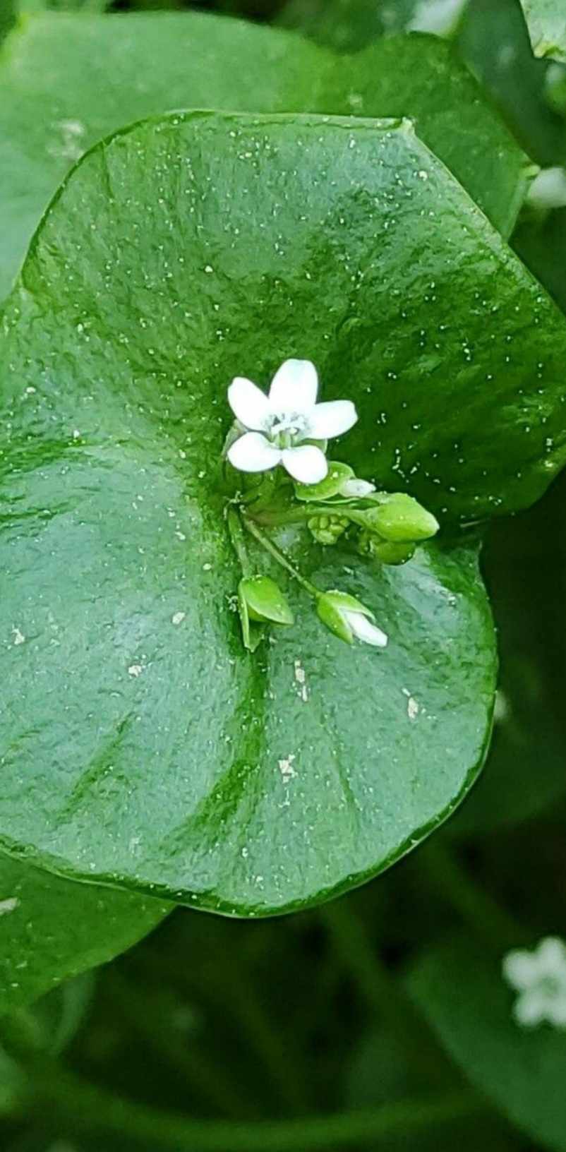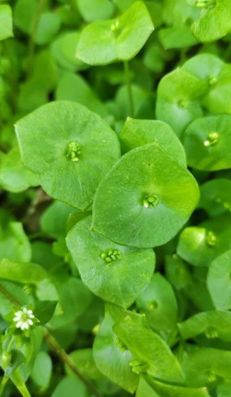 Claytonia perfoliata (Miner’s Lettuce) is an edible plant that is native to North America, it is also referred to as Winter Purslane. All parts of this plant are edible, the flowers, stems, and leaves can be added raw to salads or cooked like a vegetable.