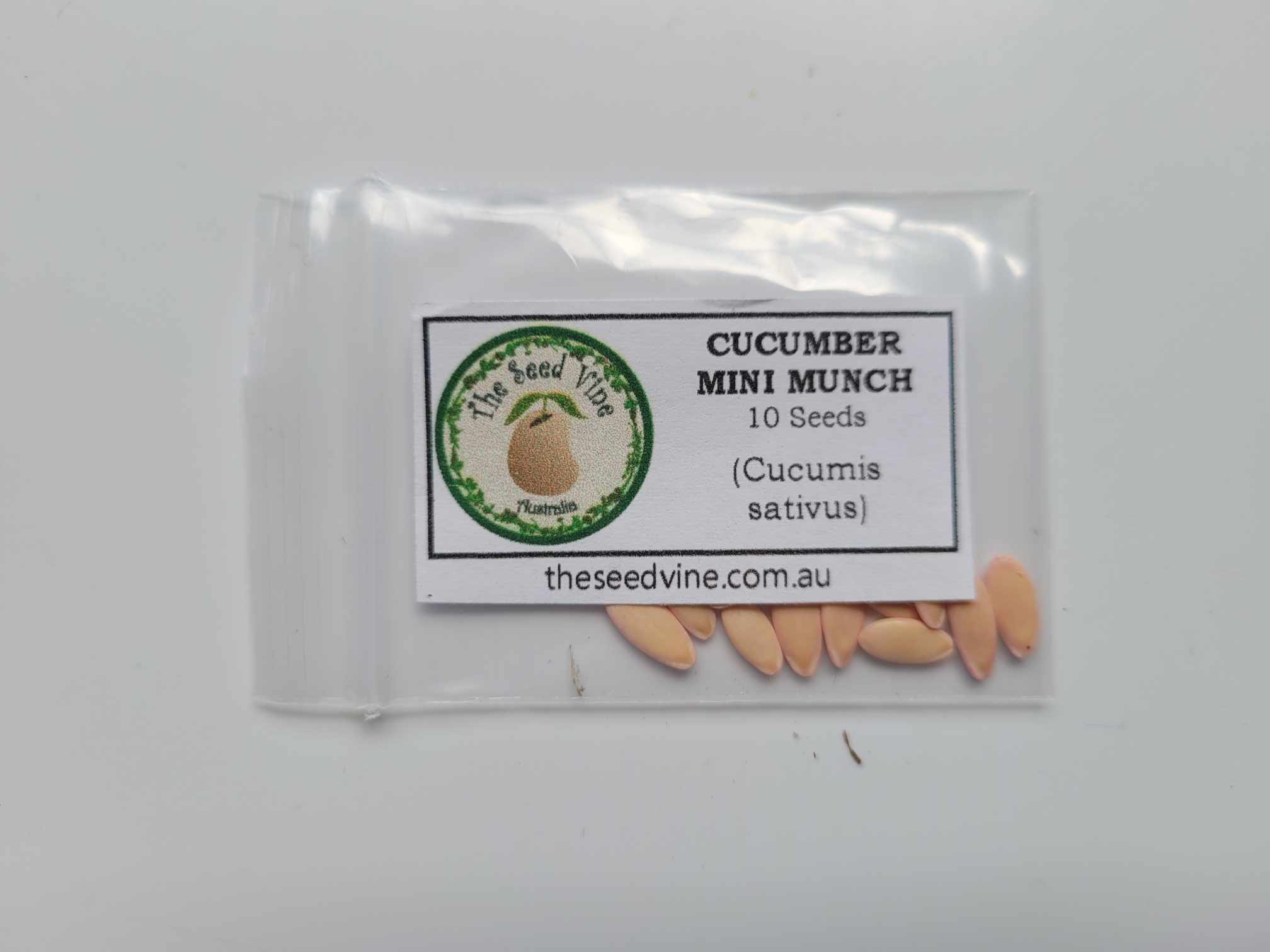 The Mini Munch Cucumber ( Cucumis sativus ) is a snack sized version of the Lebanese cucumber. The skin of these little beauties are tender and mild so do not require peeling and the flesh is crisp, juicy & seedless. This variety is bred to be high yielding and one plant can produce as many as 30-40 fruits. The Mini Munch Cucumber also copes much better than many other varieties with cooler weather.
