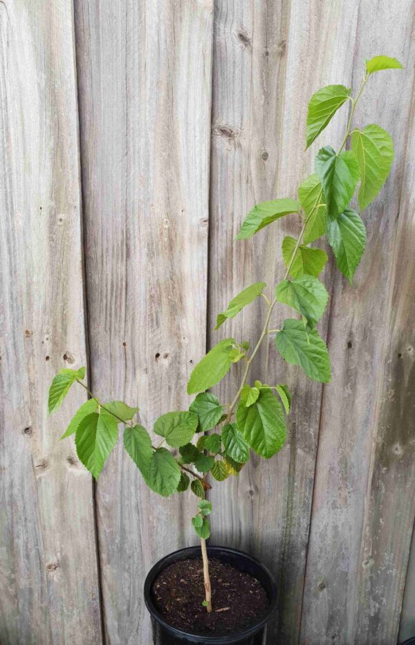 Morus alba (White Mulberry) is a deciduous, fruiting plant that is native to the colder climates of China. The White Mulberry tree has been cultivated for thousands of years, primarily for feeding the silkworm and for a range of traditional medicines. In modern times, it has been grown in cities worldwide for its low-maintenance shade and attractive foliage.
