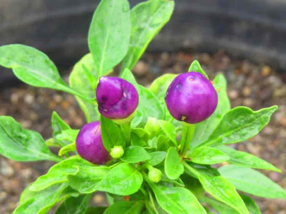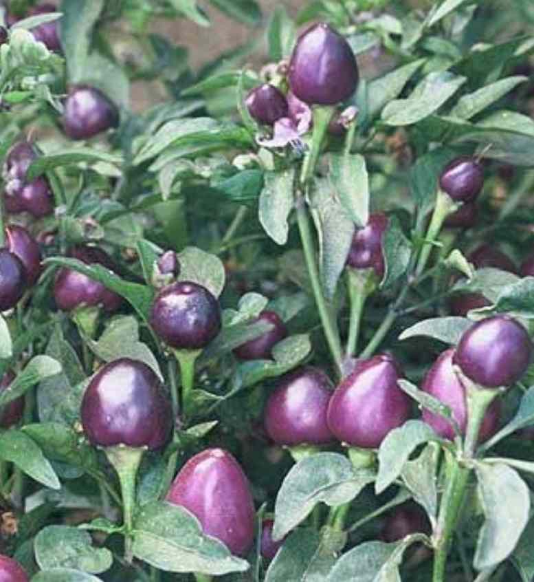 Purple Prince Chilli ( Capsicum annuum ) may look like a beautiful ornamental plant and it is but don’t be fooled by its pretty exterior and mini chilli’s; they may give you quite a surprise. This variety measures in on the chilli heat scale in the same range as a Serrano and will really pack a punch. Their dark purple to almost blackish colour makes them a beautiful colour addition to any dish as long as you can handle the heat. The Purple Prince Chilli is also known as a Peruvian Purple Chilli.