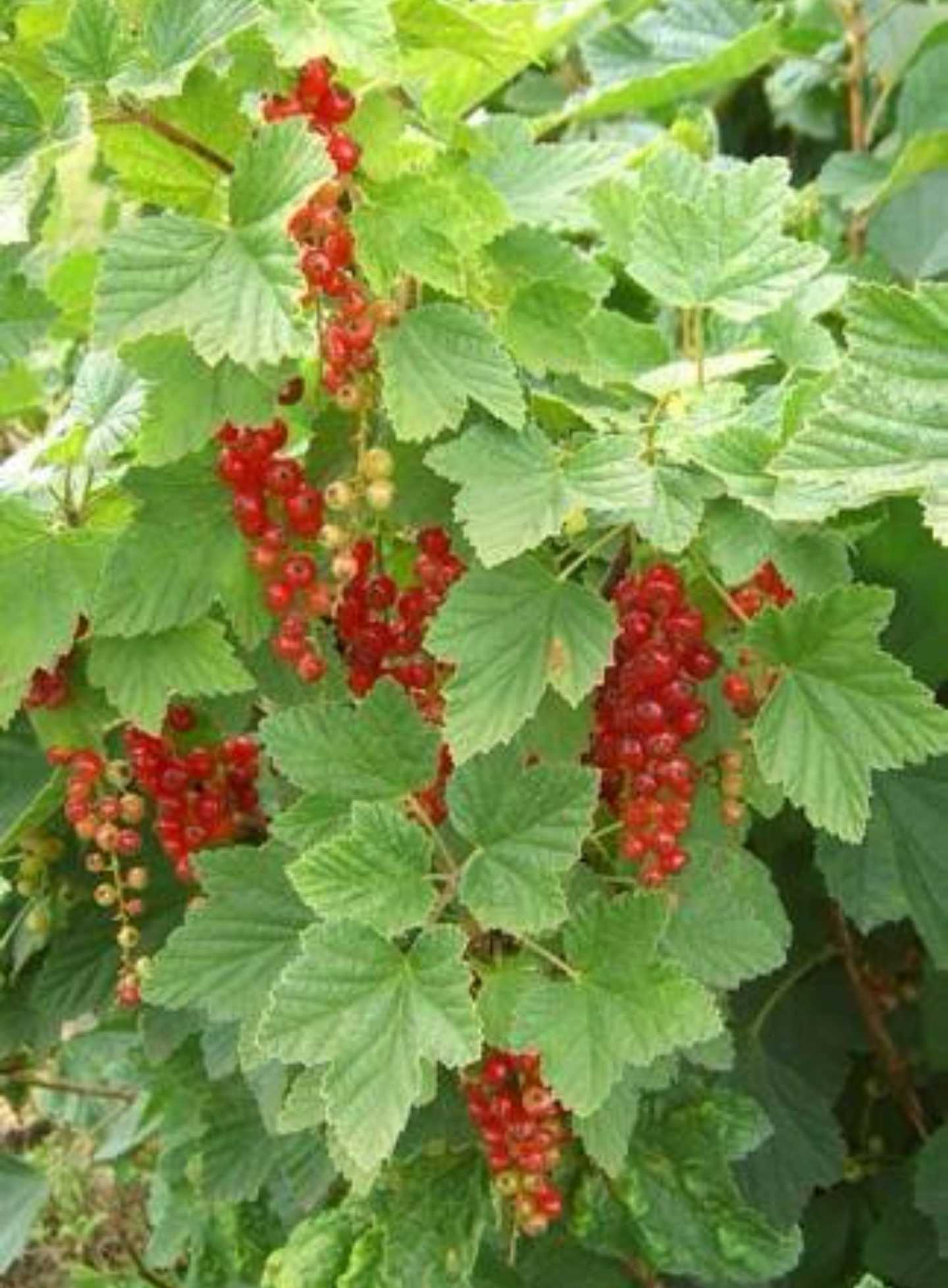 Ribes rubrum ( Redcurrant ) is a deciduous, fruiting plant that is native to the colder climates of Europe and western Asia. The Redcurrant provides sweet, tarty berries early in the summer and is a popular ingredient in pies, jams, preserves, drinks and as a condiment for game meats. The plant itself is attractive and its leaves carry medicinal value when infused in teas.