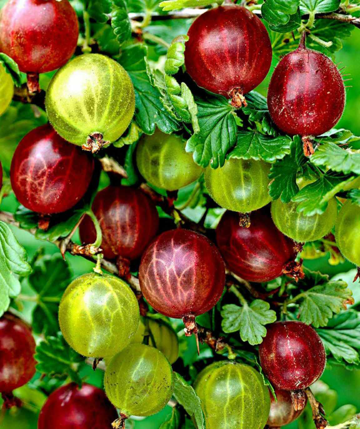 Ribes uva-crispa ( European Gooseberry ) is a deciduous, fruiting plant that is native to northern Africa, western Asia and large parts of Europe. The European Gooseberry is high in vitamins and minerals, makes delicious pies and jams and is very tasty in summer straight off the plant.