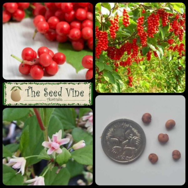 Schisandra chinensis ( Five Flavour Berry ) is a deciduous, woody vine that is native to the colder climates of Russia, China, Korea and Japan. The Five Flavour Berry is named for its combined culinary elements that include salty, sweet, sour, spicy and bitter all in one. Plants are cold and drought tolerant and come with a range of medicinal benefits.