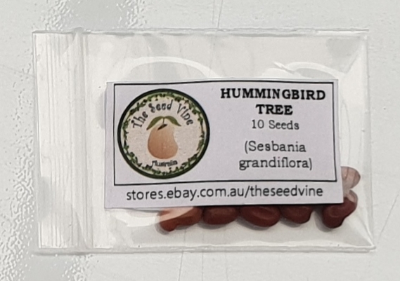 Sesbania grandiflora is a tropical evergreen tree that has a height and spread of 25 metres (82 feet) by 6 metres (20 feet). Hummingbird trees are intolerant to frost and cold temperatures and are high-maintenance in containers due to their fast-growth rate. These trees are recommended for Sub-Tropical and Tropical climates and will thrive in poor soils, full sun and lots of rain.