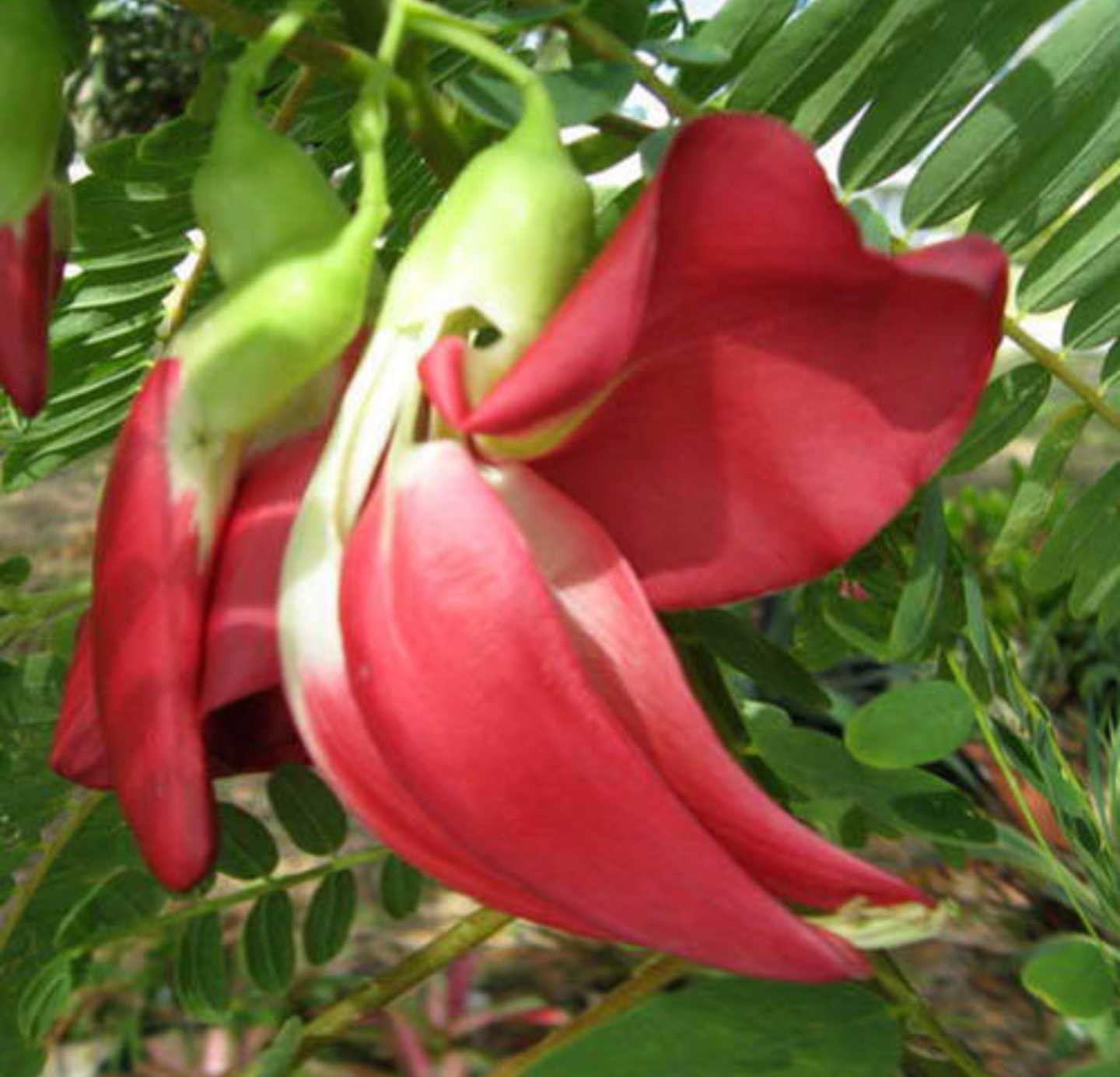 The leaves can reach as long as 30cm (12 inches) and have leaflets in 10-20 pairs while the red flowers are oblong to 10cm (4 inches) with 2-4 flower racemes. In some climates, flowering can occur all year.