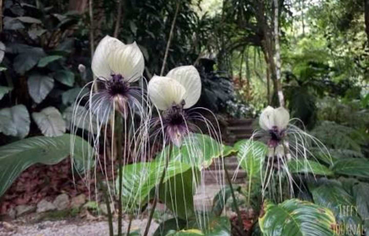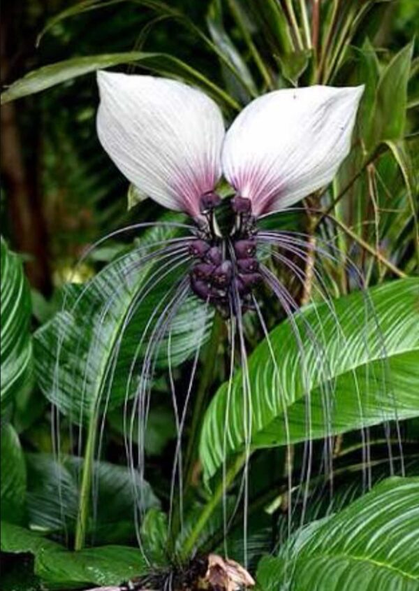 In their native habitat, White Bat Flowers that grow in hilly areas tend to be larger than those that grow elsewhere.