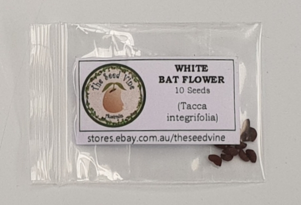 Tacca integrifolia is a popular houseplant in temperate climates but is less tolerant of cold weather than its relative, Tacca chantrieri (Black Bat Flower). It is common to see the Black Bat variety in Melbourne nurseries but not the White Bats. They are more likely to be sold in nurseries in Brisbane and Perth.