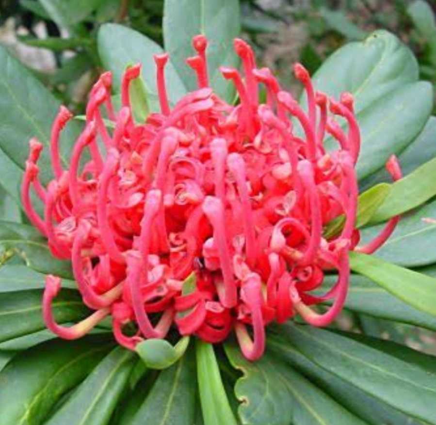 Unlike the New South Wales Waratah which usually has a few stems topped with flowers, the stems of the Tasmanian Waratah branch freely and produce numerous smaller branches topped with many more flower heads. Plants enjoy nutrient-poor soils that are slightly acidic and don’t require much watering except during flowering periods.