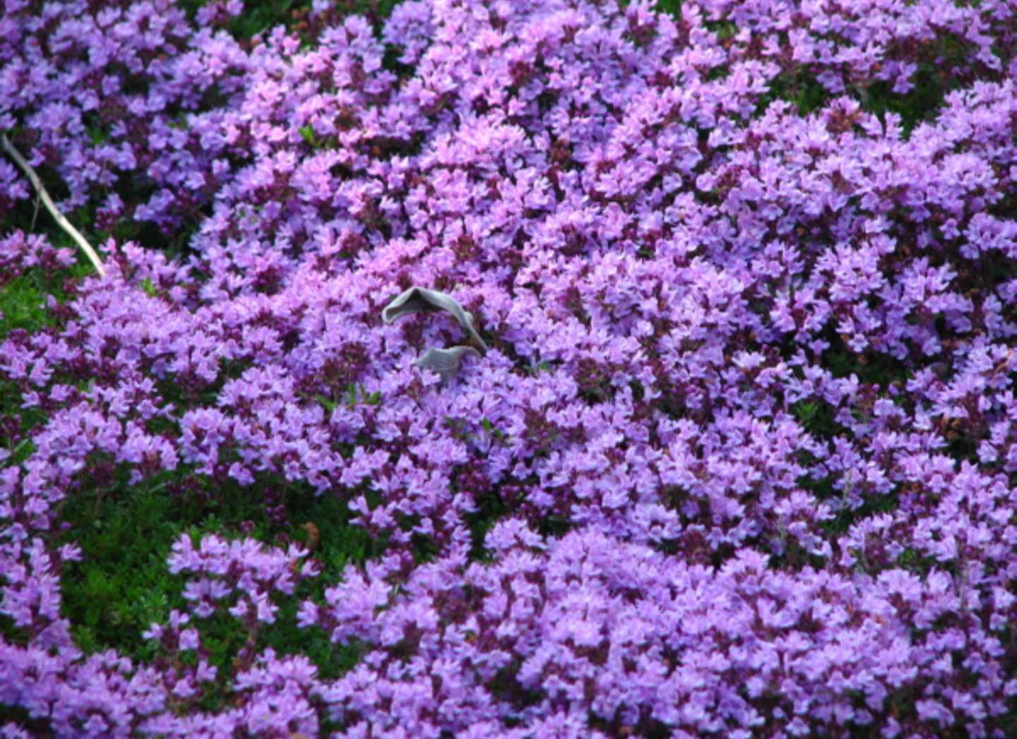 Ideal as a groundcover or filler for small spaces or between stepping stones, Purple Creeping Thyme is also used to cascade over rock ledges and as border. It can also be used as a substitute for a lawn but tolerates only the occasional foot traffic.