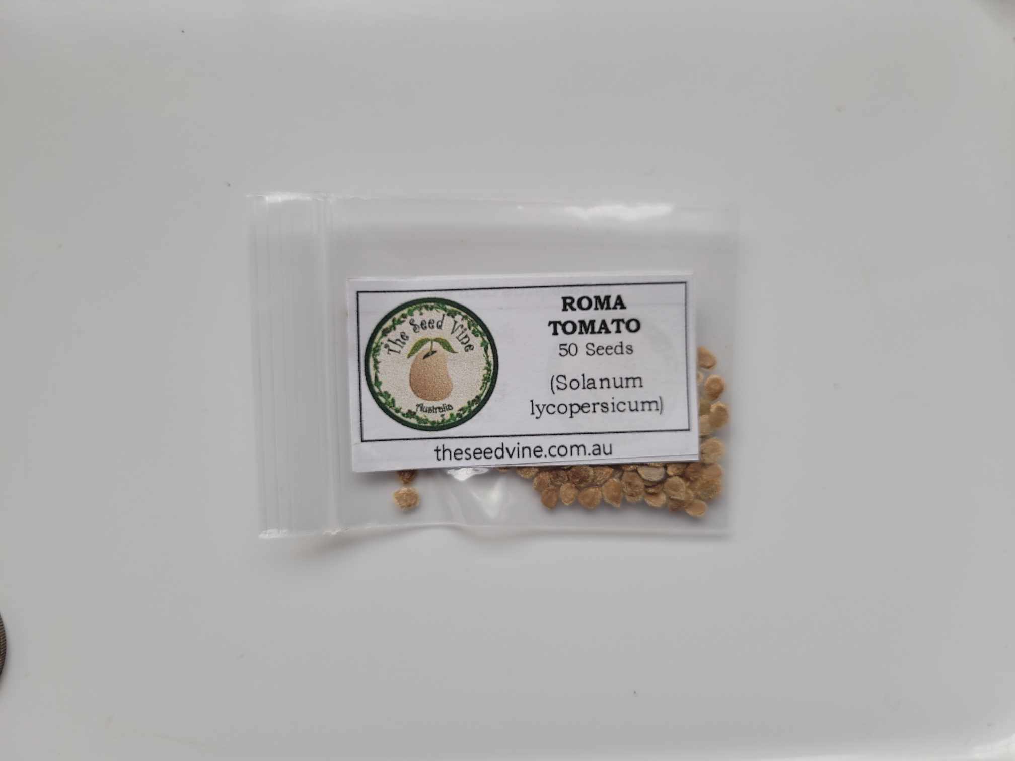 Solanum lycopersicum ( Roma ) tomato is a an open pollinated, determinate, variety of tomato. The fruit is red & elongated. Most people know this variety well as it has become highly produced commercially and is one of the few varieties always available at supermarkets. Its popularity is due to its firm skin, great flavour & multi use qualities. Commonly used as a salad tomato, the Roma is also good for cooking, sun drying, pastes, sauces and canning.